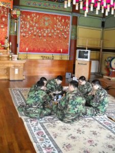 2. Is that photo of the monk leading chanting a photo of you? I wonder how Korean military men respond the first time you show up to an Army base. 🙂