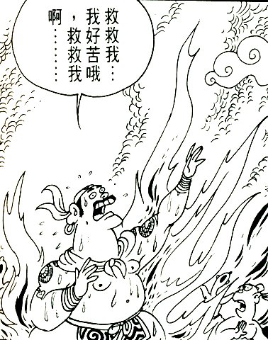 After climbing for a while, Kandata became tired and decided to rest. Looking down, he saw hell far below him. Ah! Kandata thought, all I have to do is climb just a little more and I’ll get out of here! “Great! Great!”
