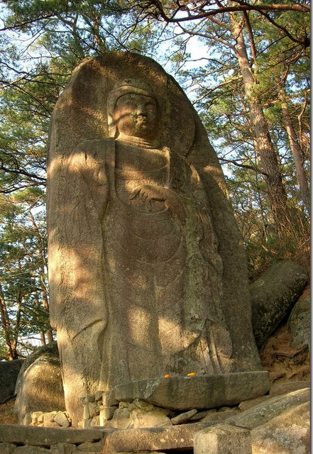 However, upon leaving Haein Temple, I had been given nothing. In addition, while staying there, I’d been put in a dark, dirty room behind the kitchen and told to be careful that none of my personal belongings were stolen. (After thoroughly cleaning the room) I spent a few days at Haein Temple, paying my respects to the great wood-block collection of the Buddhist canon and attending most of the daily ceremonies. After the morning cleaning, I would hike the mountains behind the temple, and meditate before the huge rock carvings of Buddha. (This photo is from here, with thanks to the photographer.)