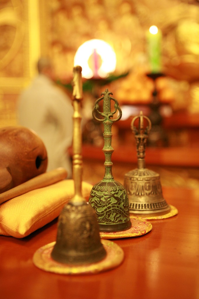 1. In Korea, there’s no special symbolism to the hand bells. They’re just pretty and sometimes mildly symbolic decoration. The Vajra design is of course a deliberate use of that image, and the other ones there are done in a design that apears to be inspired by the top piece of some old monk’s staffs. The one in the foreground (that’s out of focus of course, lol) is by far the oldest one there. The other two are much newer, almost certainly made in the last 20 years. (Older bells don’t have designs like those.) I have a hand bell I use for practicing ceremonies, and it’s much, much simpler design and cruder manufacture, but is also probably from the 1960’s or 70s. But it has a lovely sound.
