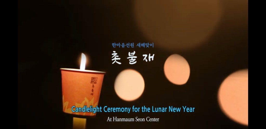 Hi everyone! I hope you all had a great Lunar New Year! Here at the center, we had a special candlelight ceremony for three days in a row, and as part of that, we showed a video of past ceremonies with narration from Daehaeng Kun Sunim explaining the deep meaning of lighting candles. We translated it, and have just uploaded a version with English subtitles. It’s only six minutes long, but each paragraph has something everyone should ponder closely.