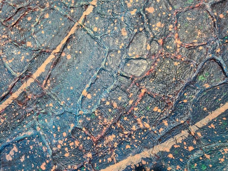 These are the works he produced after his studio, and archived works, were destroyed in flooding three years ago, and they reflect his struggles with loss, growth, and moving forward in life. The underlying medium is hanji, traditional paper, and lacquer.